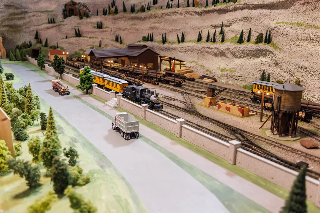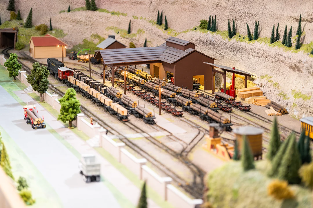 Hier treffen sich schwere Güterzüge, beladen mit Holz und Erz, bevor sie sich auf ihren Weg durch die schroffen Canyons in Halle F machen. Zwischen knarrenden Holzbauten und knirschenden Weichen beginnt die Reise durch Amerikas ungezähmte Natur – ein Ort voller Arbeit, Geschichte und Aufbruch.